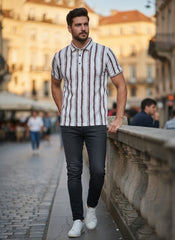 Upgrade your casual style with our Men’s Maroon & White Vertical Stripe Half Sleeve T-Shirt, designed to bring a bold and modern look to your everyday wear. Made from premium soft cotton fabric, this striped tee provides all-day comfort, breathability, and a smooth fit—perfect for summer outings, casual meetups, and weekend wear.