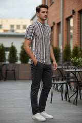 Upgrade your everyday style with this Men’s Purpal Vertical Stripe Casual Half Sleeve T-Shirt, designed for modern comfort and effortless fashion. Featuring bold multi-tone vertical stripes, this shirt offers a slimming, smart look perfect for casual outings, weekend plans, or relaxed evenings.
